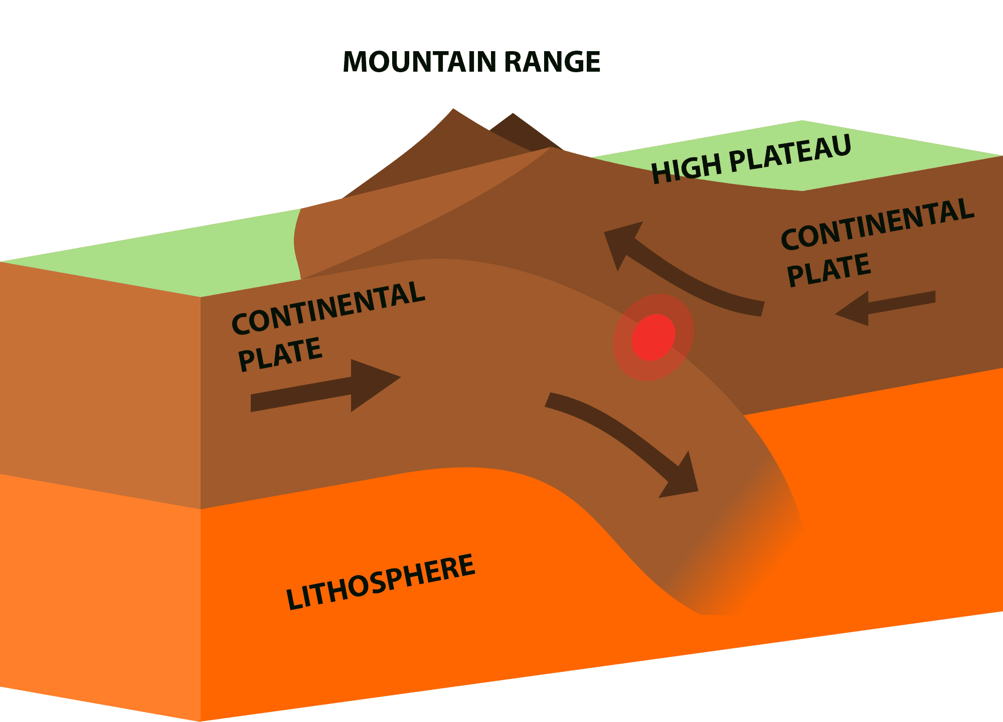 While the mountains were rising, the land behind them started to sink. The ground was stretched and pushed down by the same powerful tectonic forces, causing it to bend inward and form a huge, bowl-shaped valley; a so-called ‘back-arc basin’.