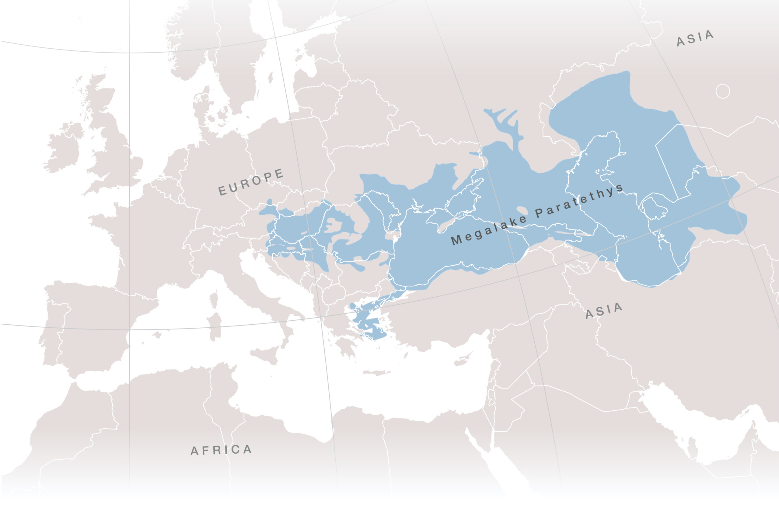 The Paratethys Sea was connected to the Mediterranean Sea near present-day Trieste in Italy. Over time the ever-growing mountains caused the basin to be cut off from the open sea and turned this sea into a Megalake with a volume of 1.7 million km². It caused the Marine Phase to come to an end, and started the Brackish Lake Phase, as it became less and less salty. ~2 million years before it disappeared, it even reached the Freshwater Lake Phase.
