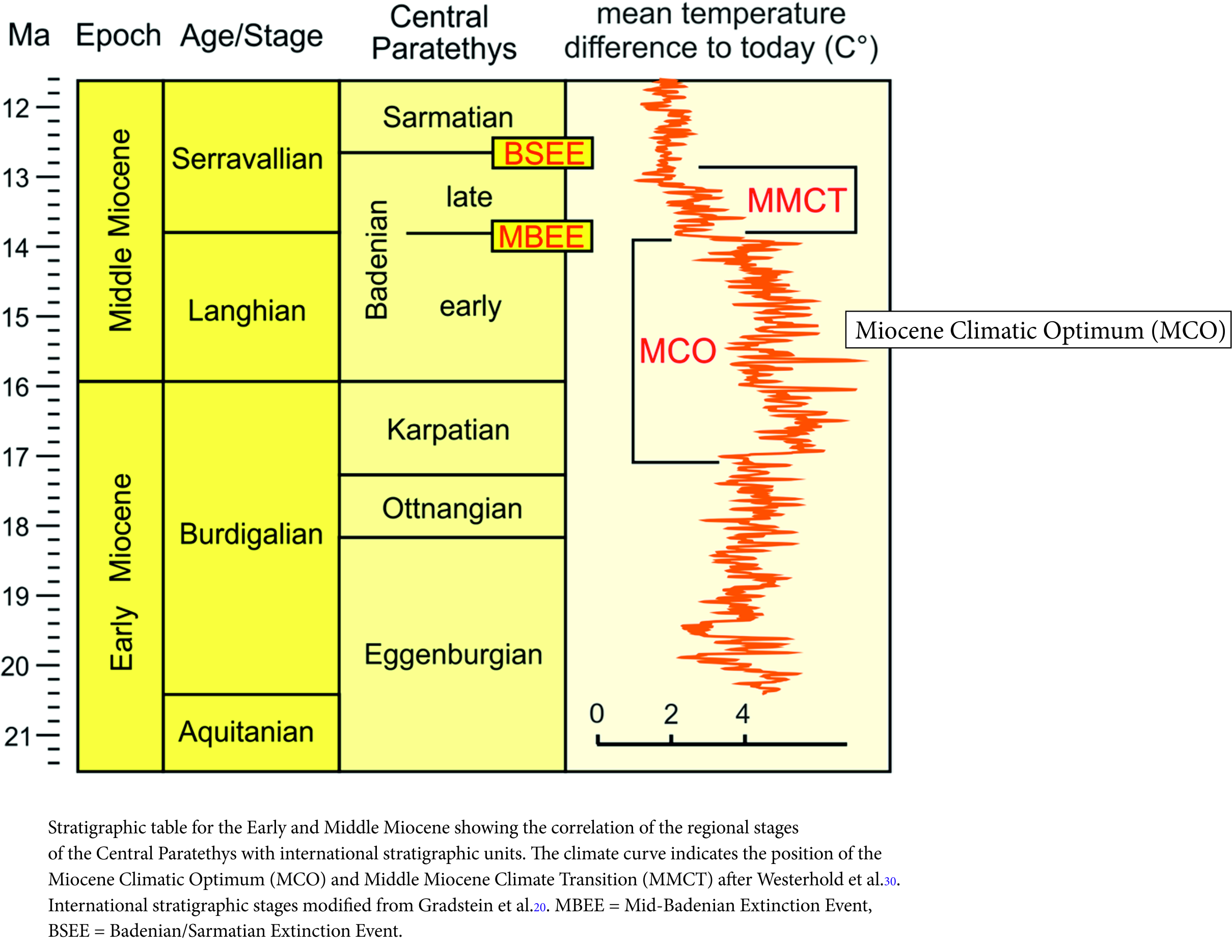 In the Middle Miocene-period, the Pannonian Basin was a part of the Central Paratethys; a semi-isolated sea that stretched across much of Central- and Eastern Europe. At the time of the MCO, it was also connected to the Eastern Paratethys, so marine waters dominated the region as the Eastern Paratethys was essentially a giant sea.