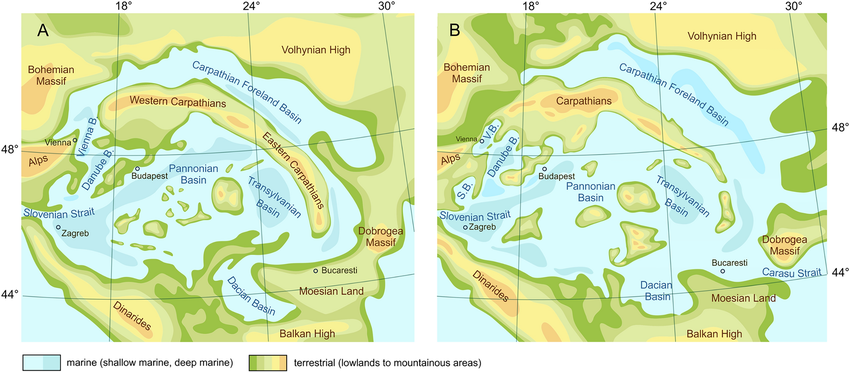 The Central Paratethys existed until the Middle/Late Miocene boundary―after which the area was transformed into the brackish Lake Pannon that gradually filled with river sediments that had flowed into the lake during the Pliocene.