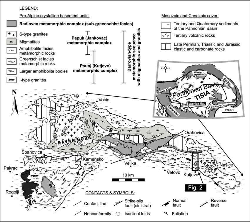Simplified geological map of the Slavonian Mts. ⁕ ©2006 Péter Horváth, ResearchGate